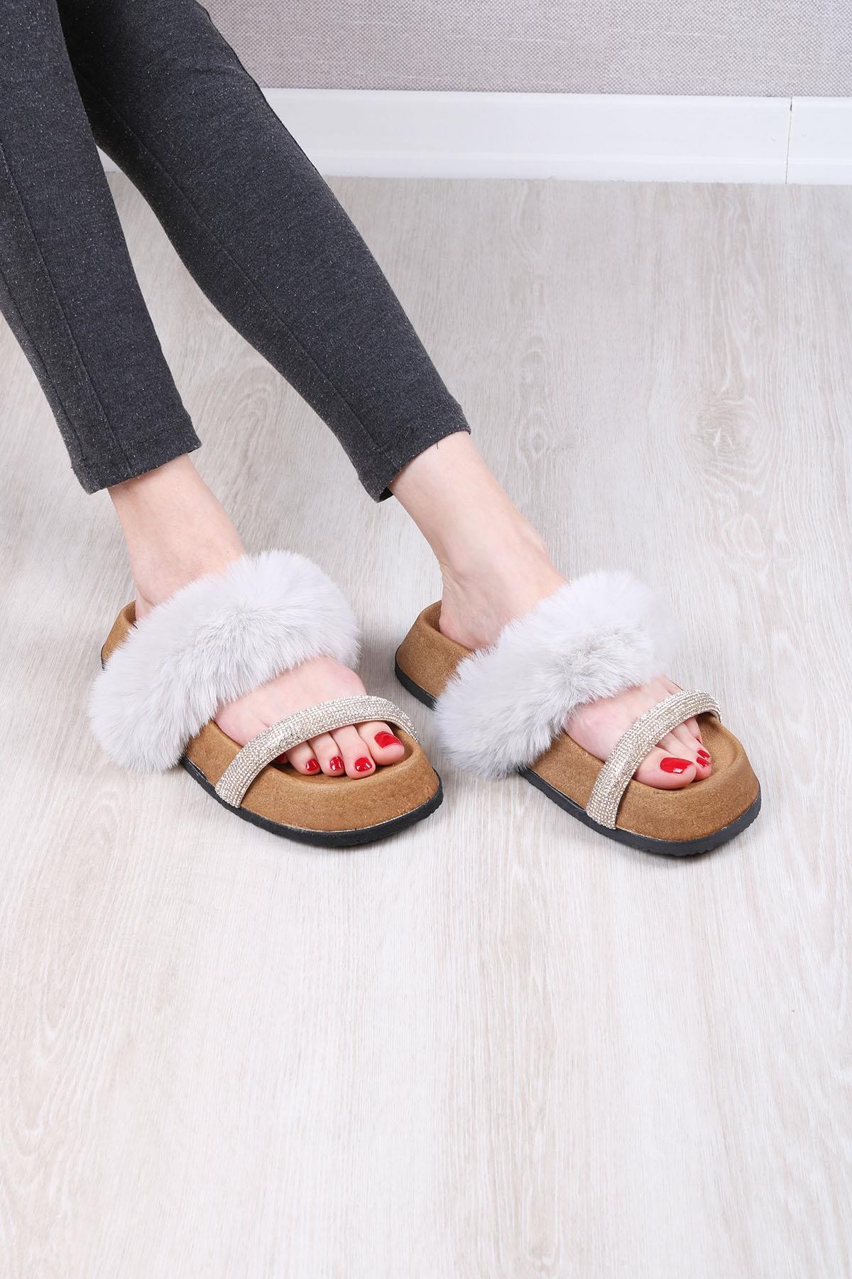 Kadın Günlük Taşlı Peluş Terlik TS1133