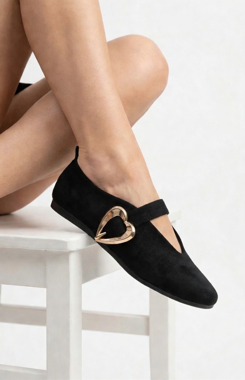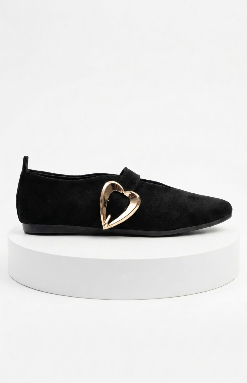 Kadın Kalpli Tokalı Süet Günlük Babet Ayakkabı TS1200