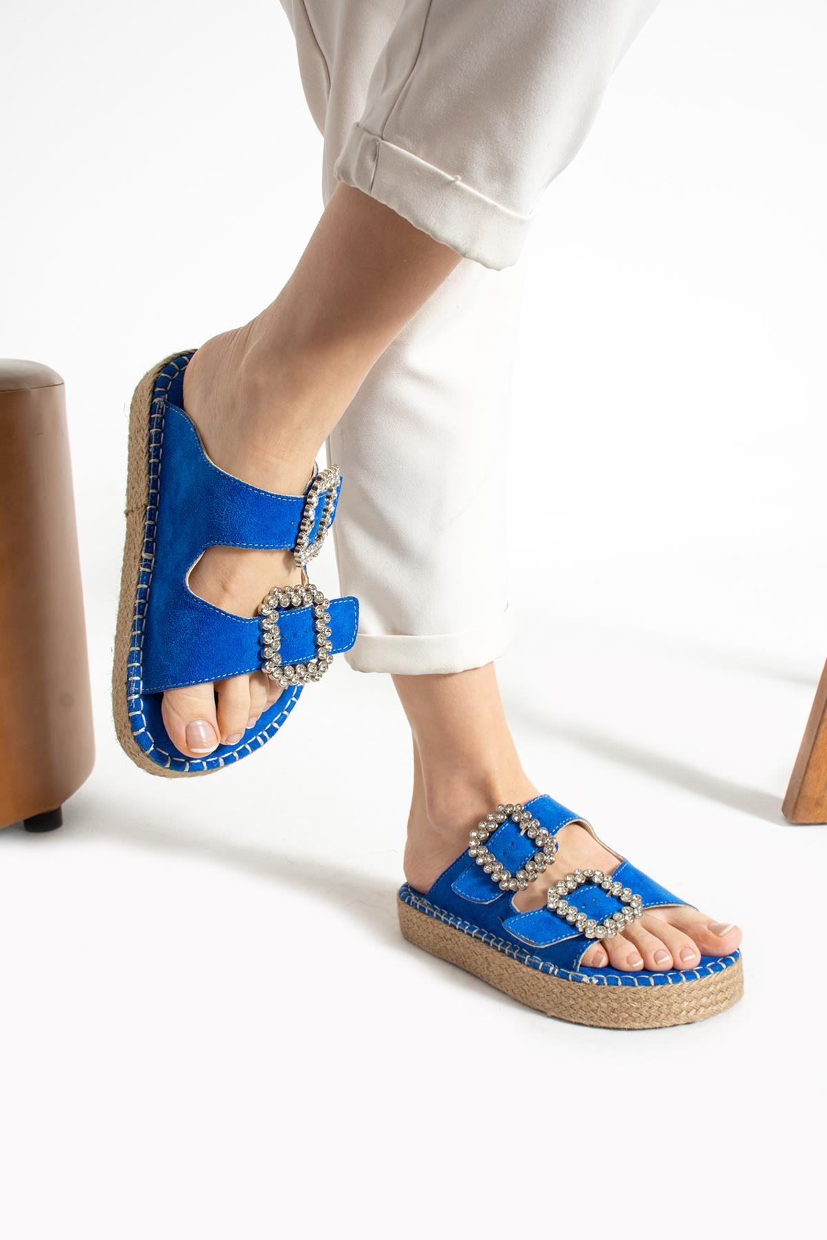 Kadın Taşlı Tokalı Çift Bant Terlik TS1173