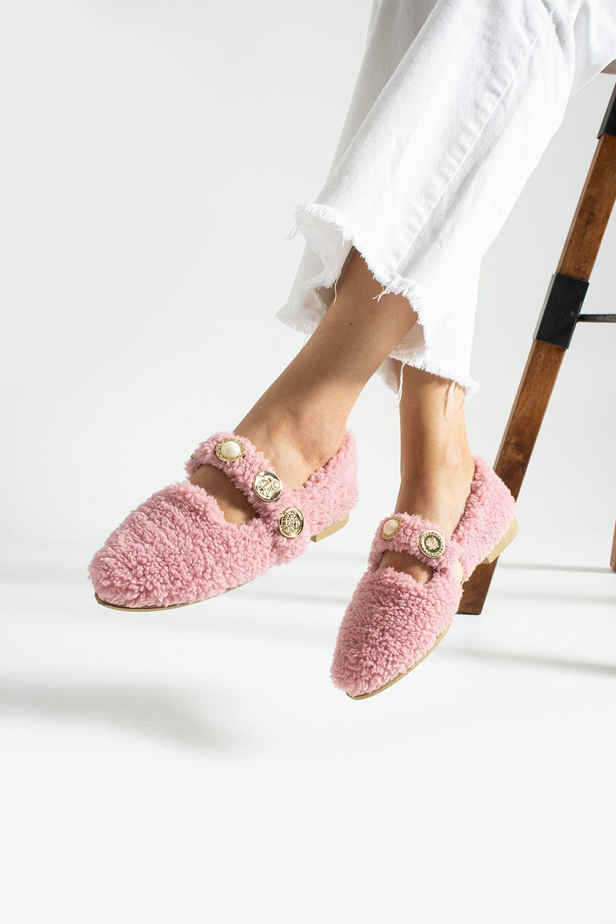 Kadın Tokalı Tüylü Peluş Babet Ev Terliği TS1190