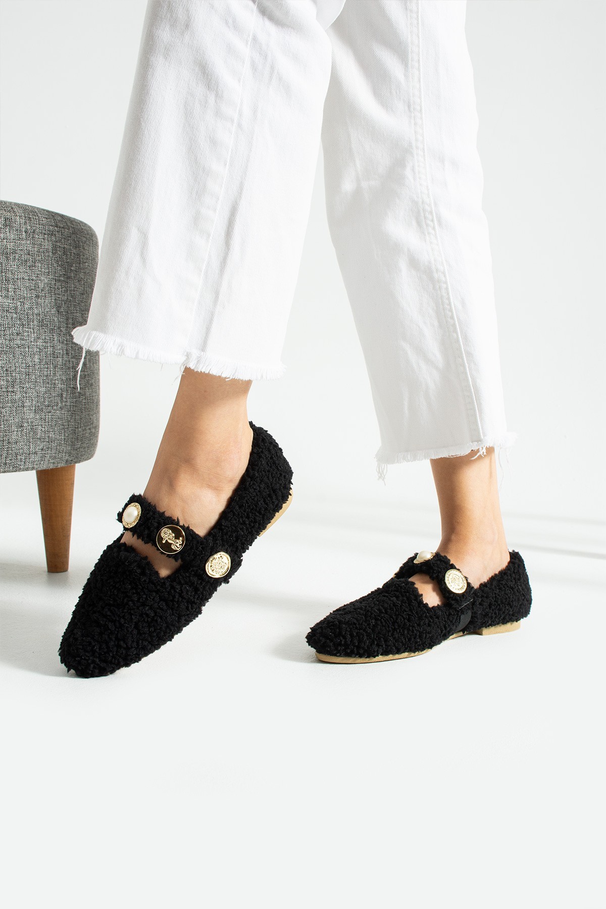 Kadın Tokalı Tüylü Peluş Babet Ev Terliği TS1190