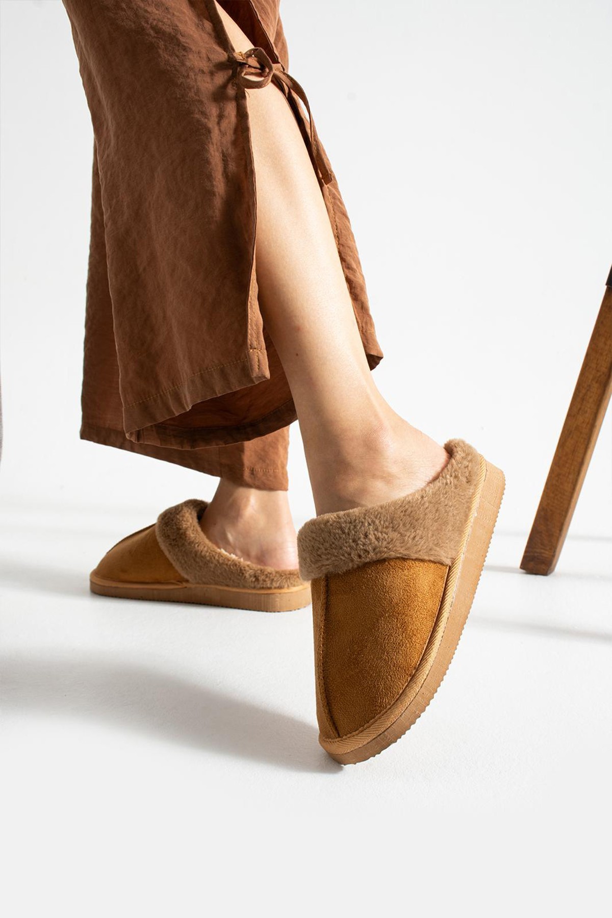 Kadın Tüylü Peluş Sessiz Ev Terliği Terlik TS1194